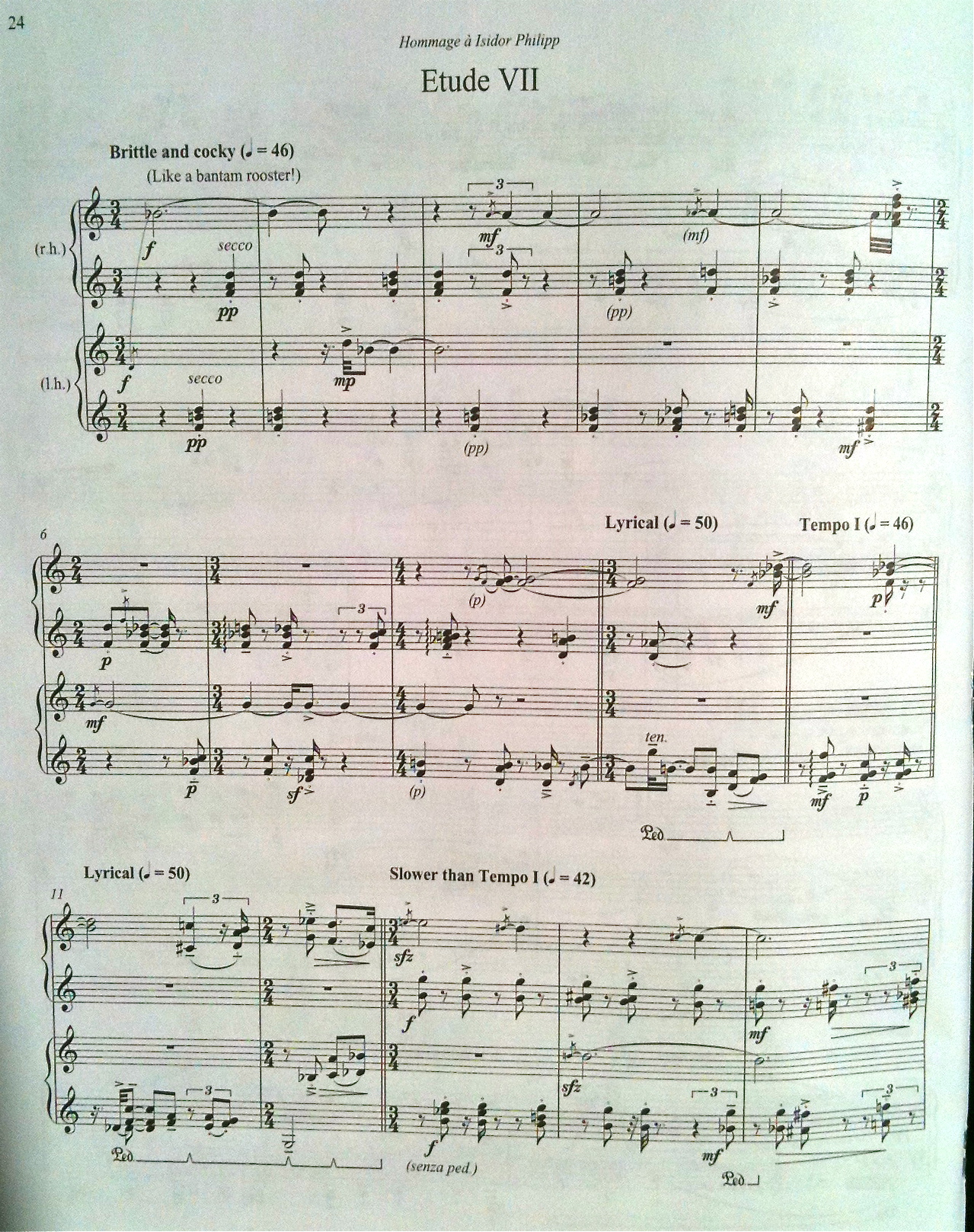 The cycle of twelve etudes begins with a rather jaunty canon. It gets quite hard later on. I admire challenging composers who can play their own music! (Click to enlarge the pages.)