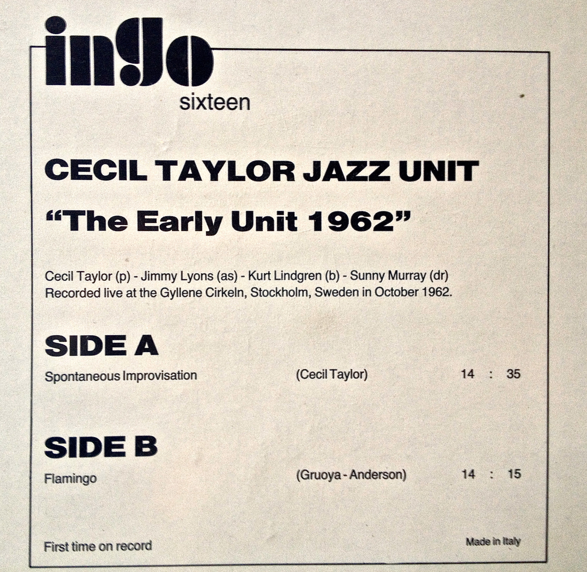 Speaking of harmony, a good friend in Amsterdam has the most astonishing record collection. I’d never seen Cecil Taylor’s The Early Unit 1962 before.