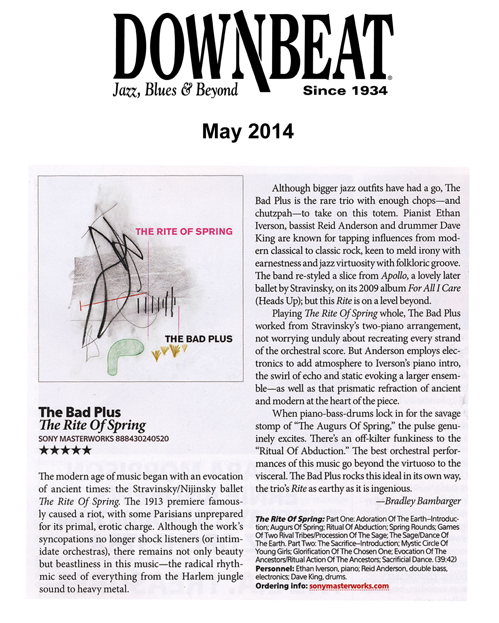 Chris Barton in LA Times: “The Bad Plus mostly set aside improvisation in an effort to capture Stravinsky’s modernist vision, but in some ways it’s never sounded freer.”
