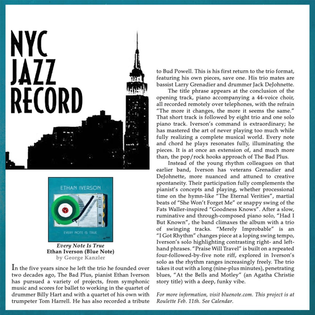 Another preview track from my forthcoming trio disc with Larry Grenadier and Jack DeJohnette has been released by Blue Note. “For Ellen Raskin” can be heard on YouTube and on all the streaming services.