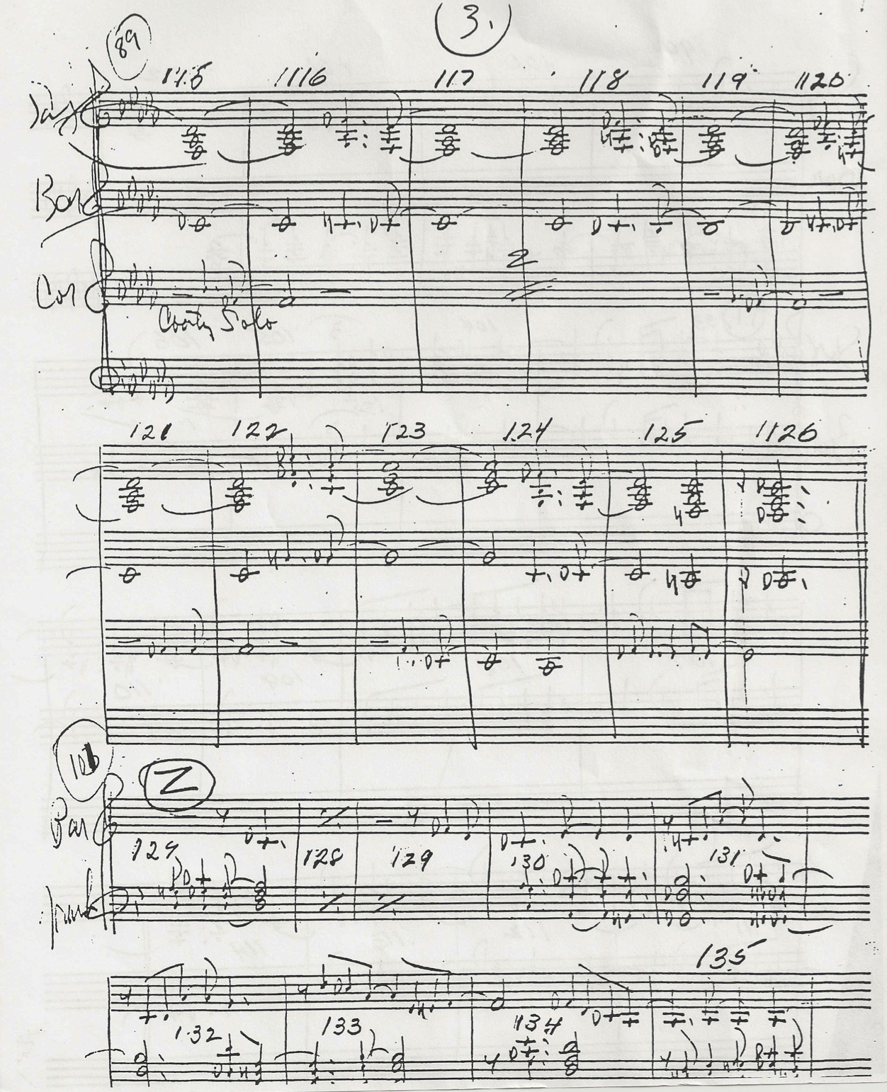 This stretch of music is extremely deceptive, however so others might not hear it the same way. Sonny Greer doesn’t mark any of this stuff so we are on our own here! As I mentioned above, it’s also possible to hear the FALSE START as a prolongation of CHORUS 2, making it a 14-bar blues chorus followed by a 2-bar interlude. (That interpretation is supported by the placement of the double barlines on Duke’s manuscript, though I’m not sure we should read too much into that — the double bars might easily have been added by a copyist after the fact.)