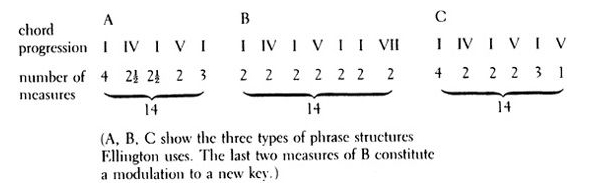 Here is the actual formal plan of Diminuendo in Blue (in its original 1937 recording, available here):