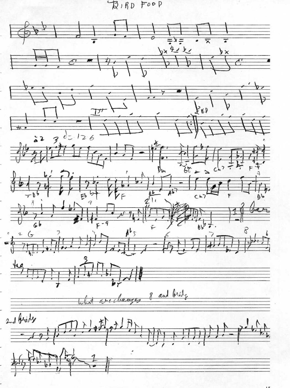 “Bird Food” shows what Don probably wrote out (top portion) with Gunther’s own penciled-in transcription underneath (the first draft so-to-speak).