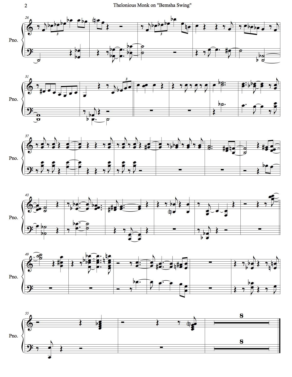 It’s funny how strong E-flat comes across considering how little Monk plays that chord! I wrote it four flats for convenience but am in no way married to that key signature.