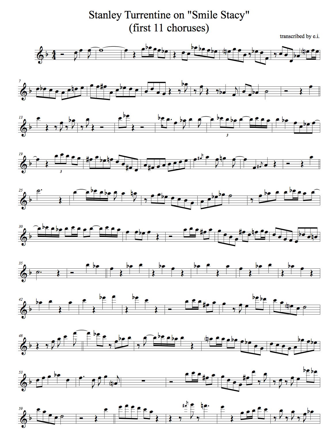 At the top of the fourth chorus, Turrentine plays nothing but quarter notes for the first eight bars. The pitches are secondary to placement. This feel can’t be notated on any music paper, but it is a big reason why we listen to jazz.