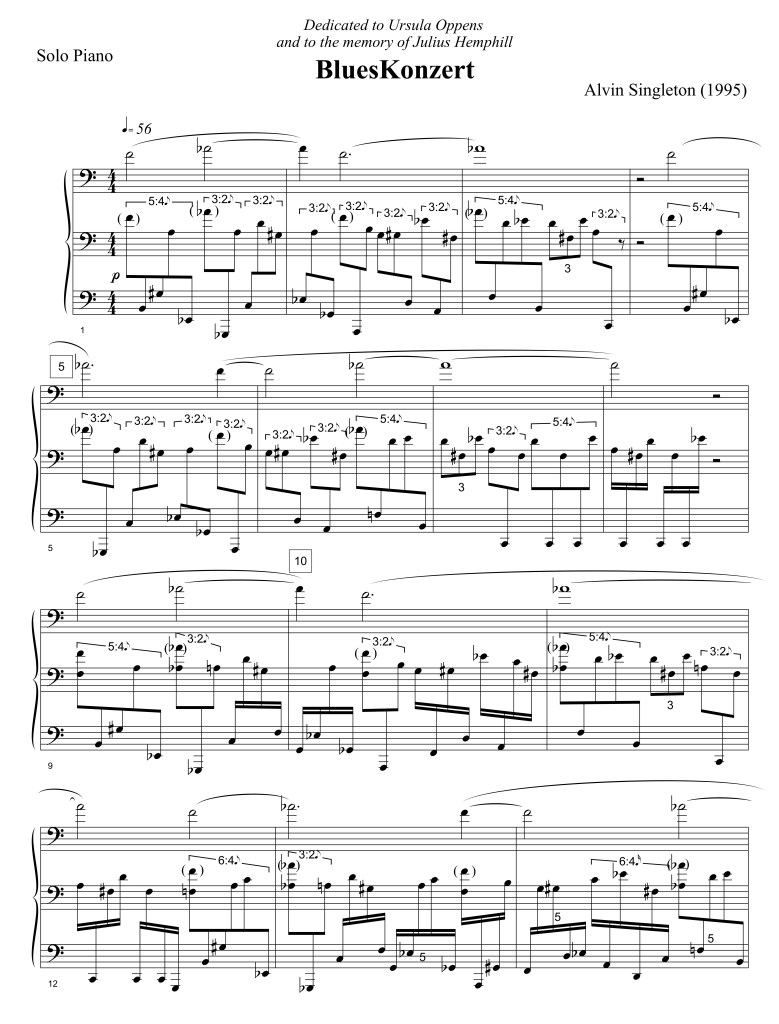 Alvin Singleton, BluesKonzert (1995). Singleton obsesses over varied melancholy gestures. Possibly a masterpiece. The work deserves a new recording with pristine sonics and a more secure gait, although the live document with Ursula Oppens will always have historical weight.