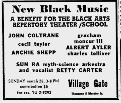 While these three Taylor pieces are fairly well known and widely available, the music from the Black Arts Repertory Theatre benefit is comparatively less familiar. It was a historic occasion, a unique opportunity to assess diverse aspects of “the new thing” as it was happening live for a major concert produced by Amiri Baraka.